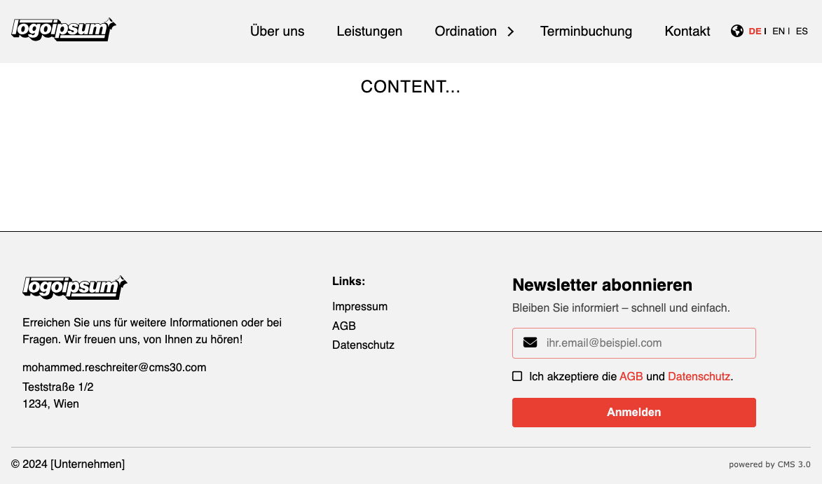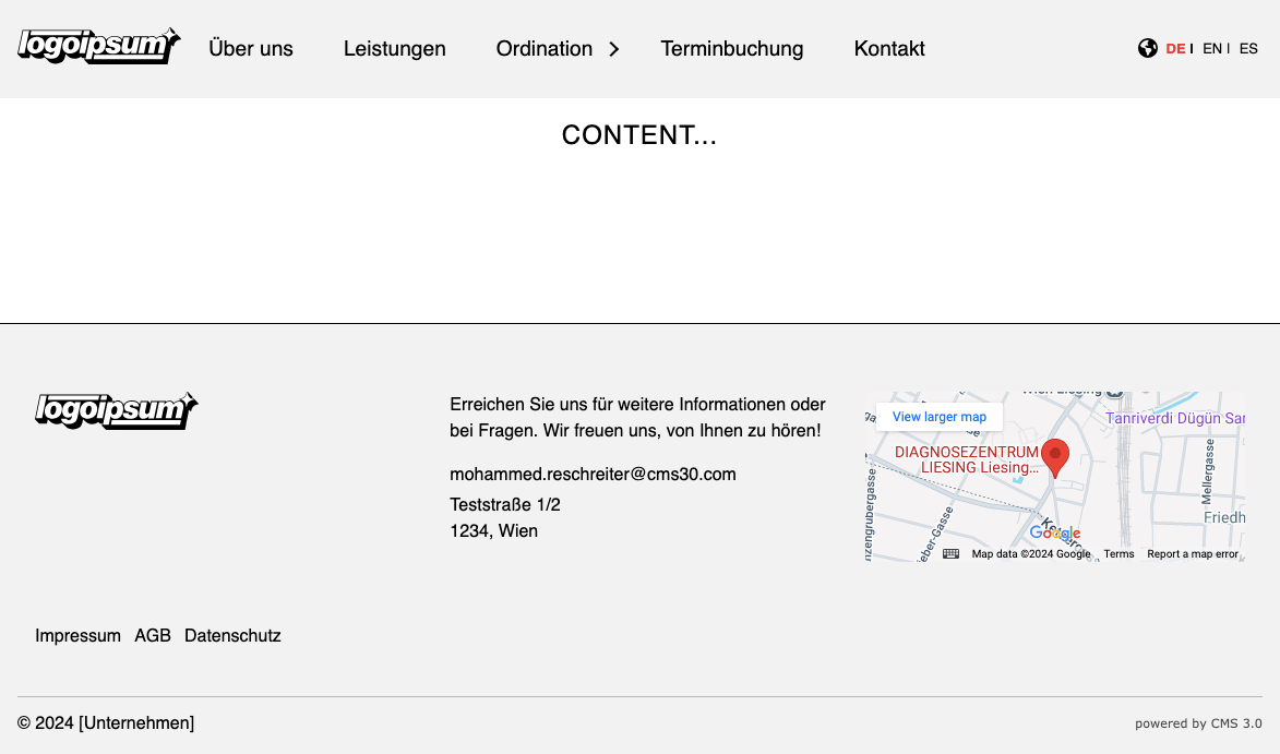 18.04.2024(Leere Seiten) Home, Über uns, Leistungen, Ordination (Patienteninformation, Karriere), Terminbuchung, Kontakt, Impressum, AGB und Datenschutz